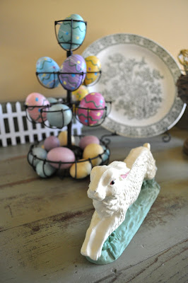 I hope everyone is having the beautiful weather we are having. Spring is finally here! I have put out a few of my favorite Easter decorations, and I thought I would share them with you.